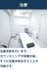 包茎治療では切る治療が有名ですが、切らない手術が可能なクリニックです。メスを入れるのが怖かったり、傷跡が残るのが嫌な人は切らない手術も選択肢のうちの1つとなります。もちろん切る手術も可能です。